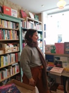 C’est vraiment un métier que j’ai choisi et j’ai arrêté mon précédent travail pour me consacrer à celui-ci. J’ai d’abord trouvé l’emplacement, loué le local, je l’ai aménagé, décoré, j’y ai fait des travaux (peinture, étagères, fauteuil, ambiance comme on décorerait une chambre) puis j’ai choisi les livres (mangas, BD, livres pour enfants et des doudous). Tout cela je l’ai fait à ma manière car je travaille seule à la libraire c’est pour cela qu’il y a autant de libraires que de librairies et cela transparait dans mes choix de livres. Le libraire est d’abord là pour conseiller et peut répondre à des questions très diverses comme « j’aimerais un livre qui me transporte dans un pays, qui me permette de réfléchir à tel sujet, j’aimerais un livre triste, drôle ». Ensuite, il vend ses livres. En ce qui me concerne, j’ai 4500 livres en stocks sur 35 m². Je reçois en moyenne 50 personnes par jour et suis ouverte depuis 1 an et demi. On dit souvent que « le libraire est le dernier maillon de la chaine du livre ».