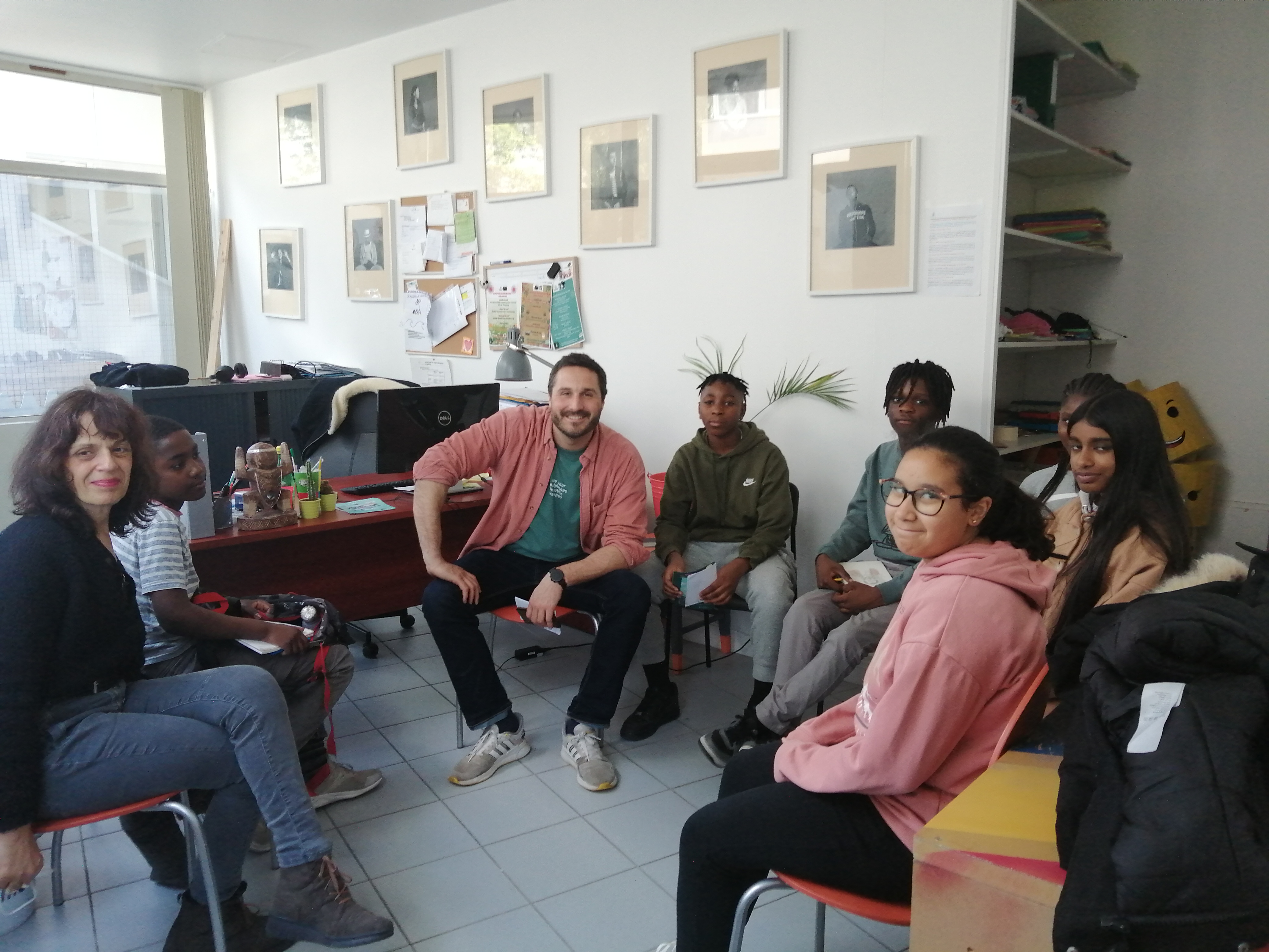 De 11H00 à 13H00, il a des réunions d’équipe et aussi avec des partenaires, prépare des activités, l’achat de matériel. L’après-midi, il a toutes sortes d’activités (culturelles, artistiques, informatiques pour les jeunes).
